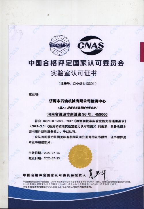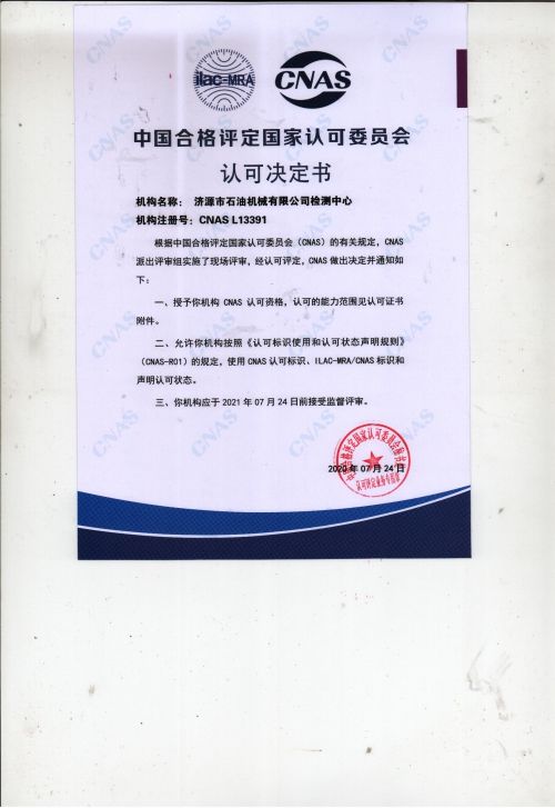 恭喜济源市石油机械有限公司检测中心喜获由“