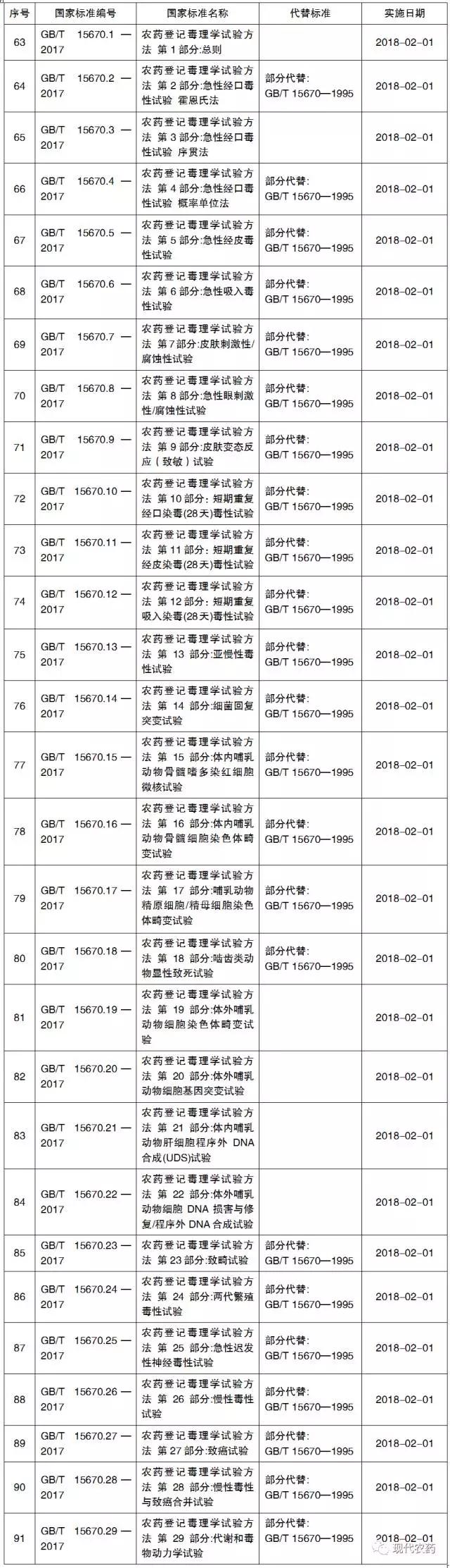 表1 2017年第13号公告中批准的和农药相关的标准