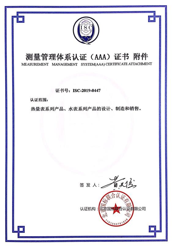 浙江南方智慧水务有限公司喜获“测量管理体系认证(AAA)证书”