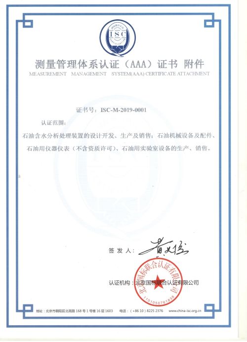 东营钧辰石油设备有限责任公司本次成功通过测量管理体系认证,符合GB/T19022-2003/ISO10012:2003的标准要求,证明了该公司在产品质量、经营管理、环境监测、安全防护、能源管理等方面起到计量保障作用。