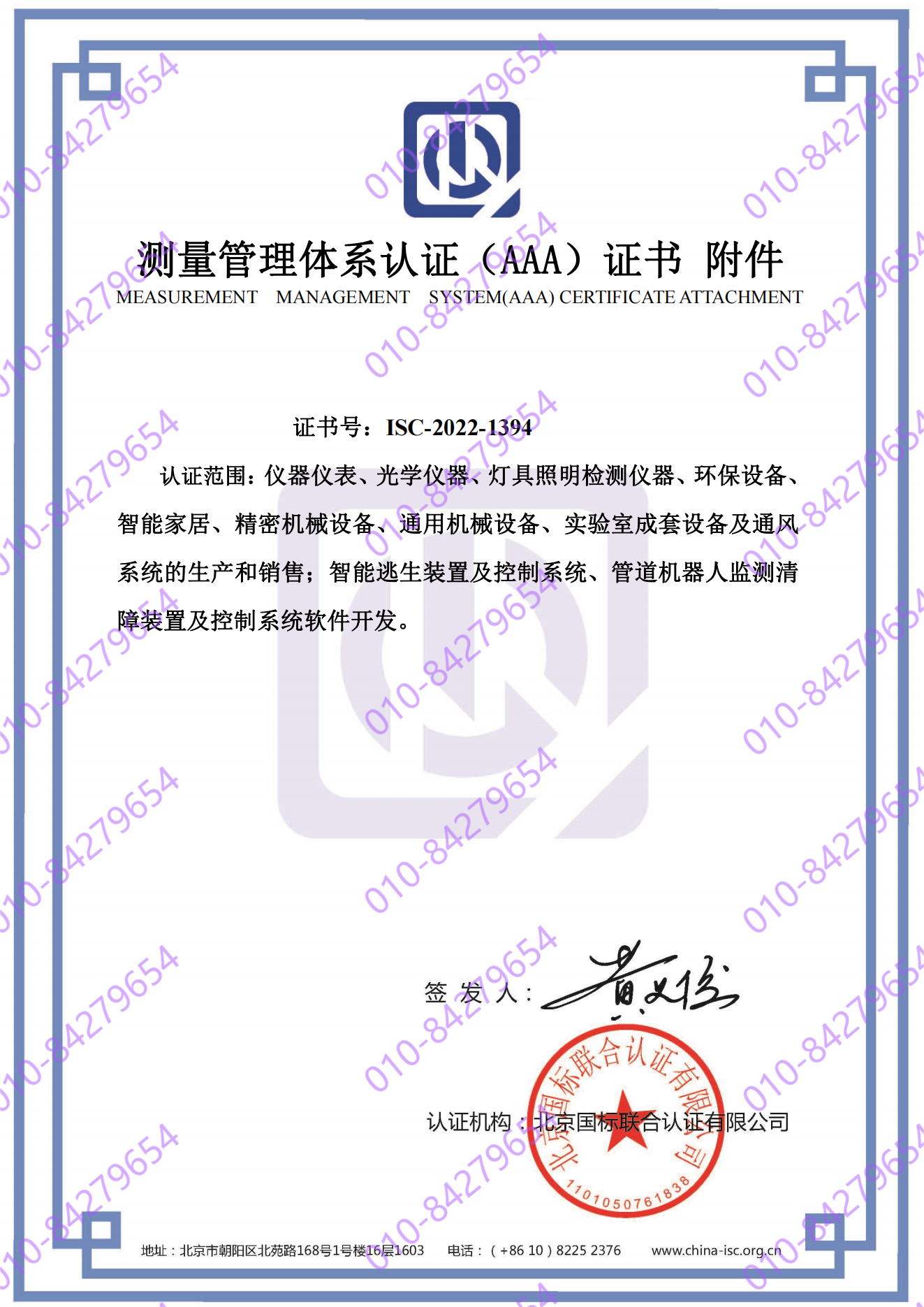 河南精谱检测设备有限公司,成功通过测量管理体系认证,符GB/T19022-2003/ISO10012:2003的标准要求,证明了该公司在产品质量、经营管理、环境监测、安全防护、能源管理等方面起到计量保障作。