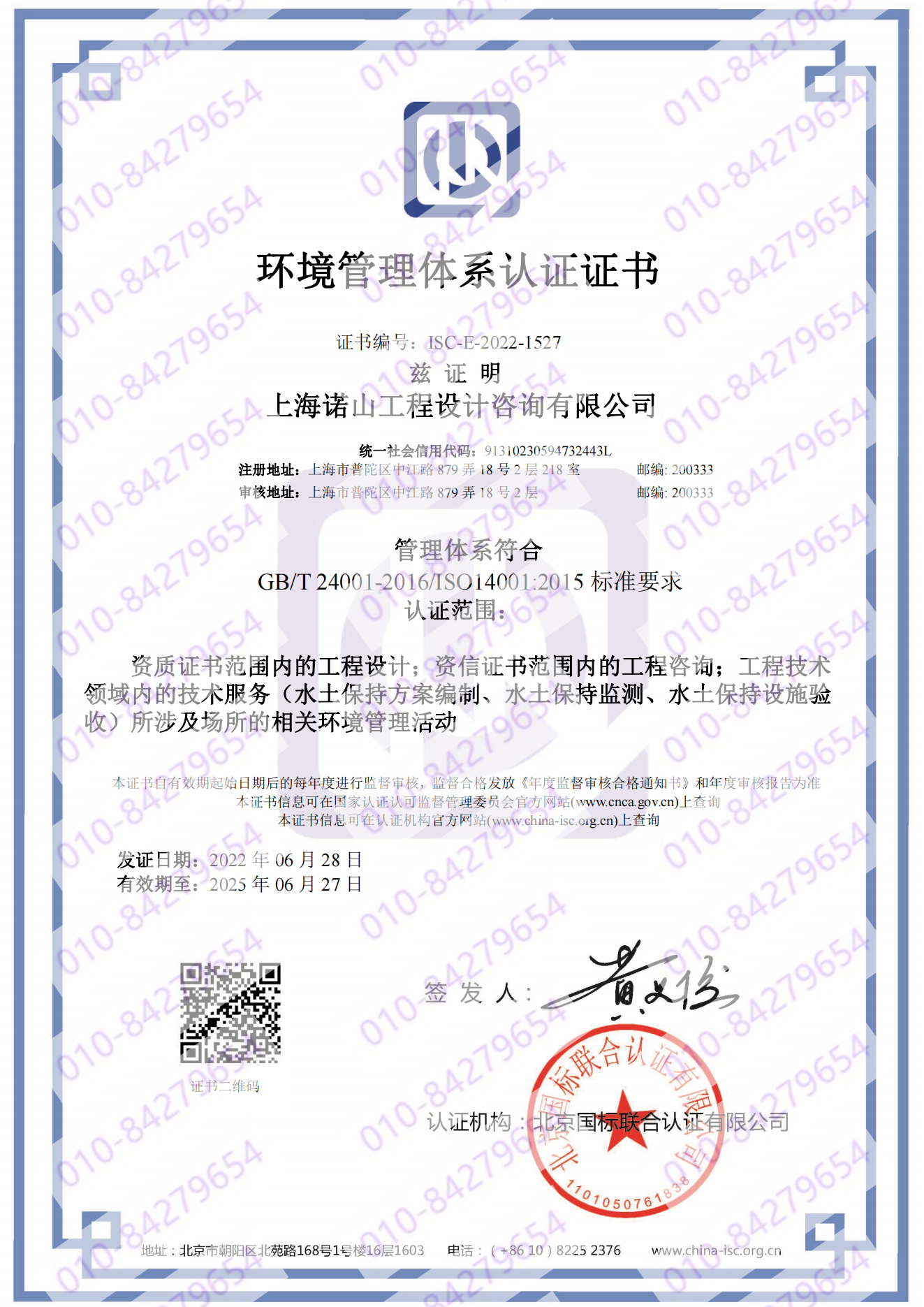 上海诺山工程设计咨询有限公司,顺利通过“三体系”认证,符合GB/T19001-2016/ISO9001:2015、GB/T24001-2016/ISO14001:2015、GB/T45001:2020/ISO45001:2018标准规定的要求。