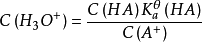 假设缓冲溶液里含有弱酸HA以及它的共轭碱 。在溶液里发生的质子反应为: