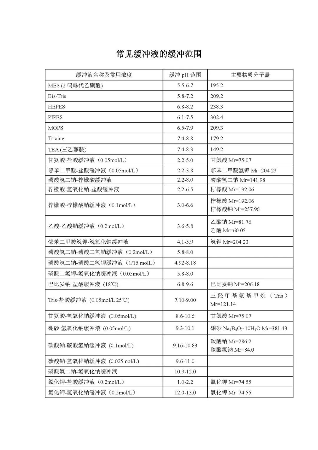 常用作缓冲溶液的酸类由弱酸及其共轭酸盐组合成的溶液具有缓冲作用。常见的缓冲体系有: