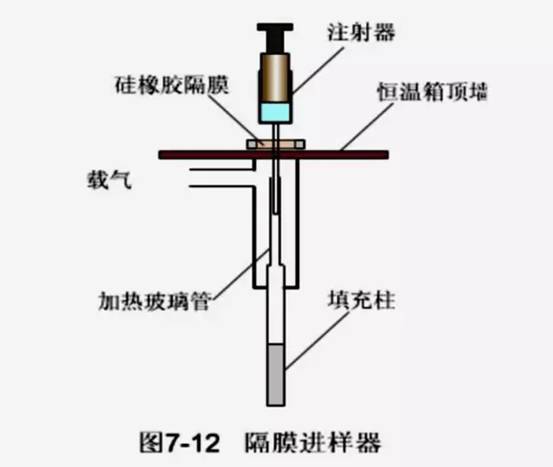 常以微量注射器(穿过隔膜垫)或六通阀将液体样品注入气化室(汽化室温度比样品中最易蒸的物质的沸点高约50oC),通常六通阀进样的重现性好于注射器。