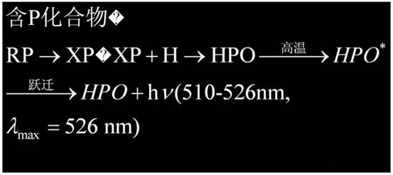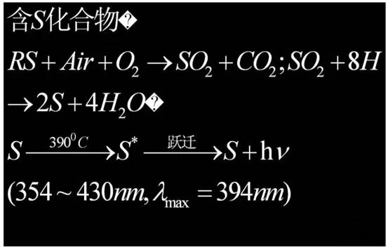 根据硫和磷化合物在富氢火焰中燃烧时,生成化学发光物质,并能发射出特征波长的光,记录这些特征光谱,就能检测硫和磷以硫为例,有以下反应发生: