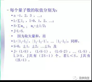 n为主量子数;L为总量子数;S为总自旋量子数;J为内量子数。M=2S+1,称为谱线的多重性。J又称光谱支项。