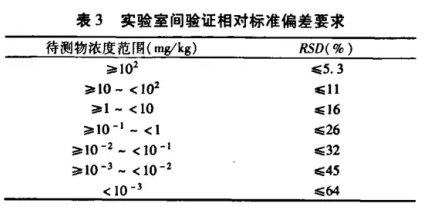 再现性表征了该方法在实验室间的精密度,用来确保该方法能够在不同实验室中应用。再现性实验过程中,必须选择至少3个不同浓度水平或加标浓度水平样品,定世限或靠近定量限的浓度为必选浓度,如果样品具有容许限,该容许限也是必选浓度,平行双份,每份平行测定至少6次。
