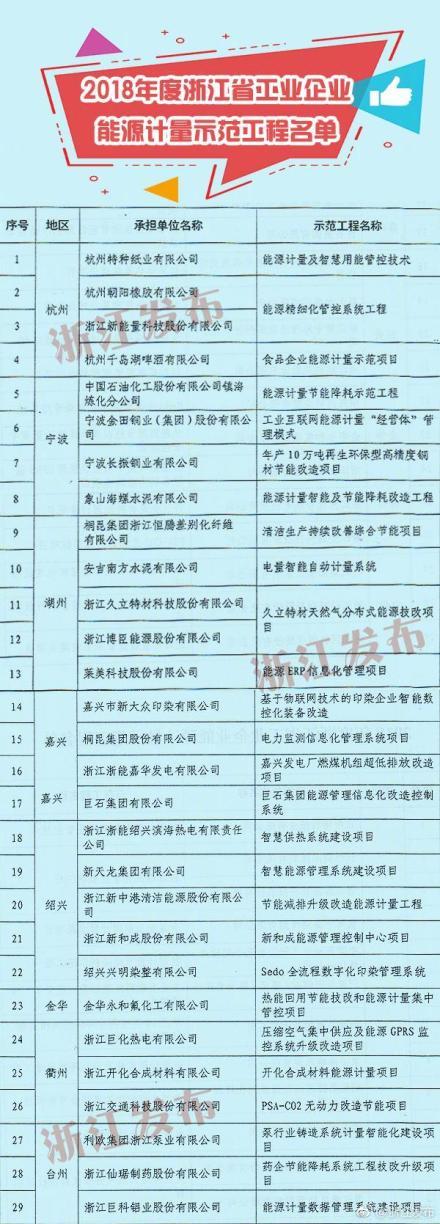 近日,浙江确定29家企业承担的“能源计量及智慧用能管控技术”等27个项目为2018年度浙江省工业企业能源计量示范工程。这对推进节能降耗、实现绿色制造、促进质量提升具有重要作用。