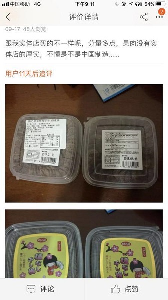 网售进口梅子干疑似假货,投诉遭客服拉黑