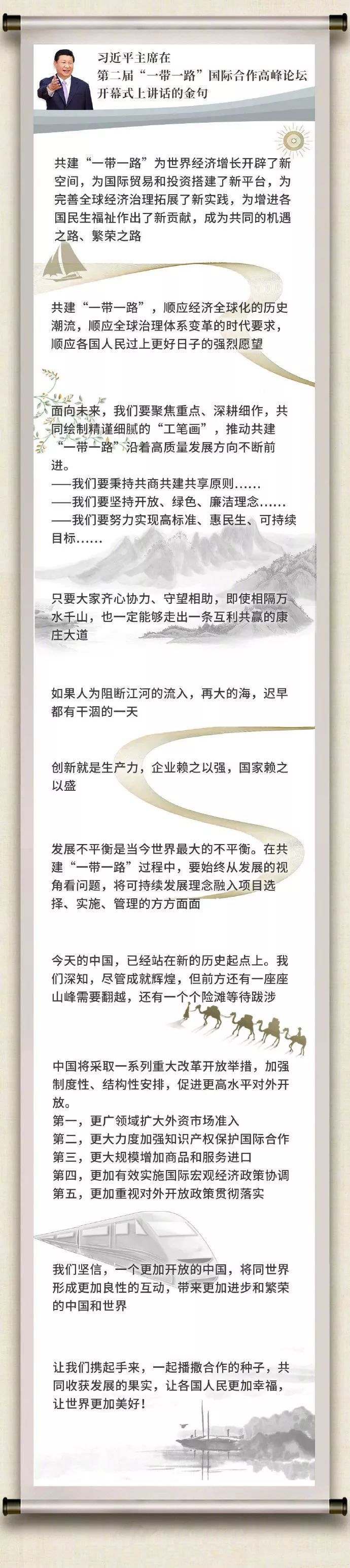 国家主席习近平26日上午在北京出席第二届“一带一路”国际合作高峰论坛开幕式并发表主旨演讲,速览习近平主席讲话金句: