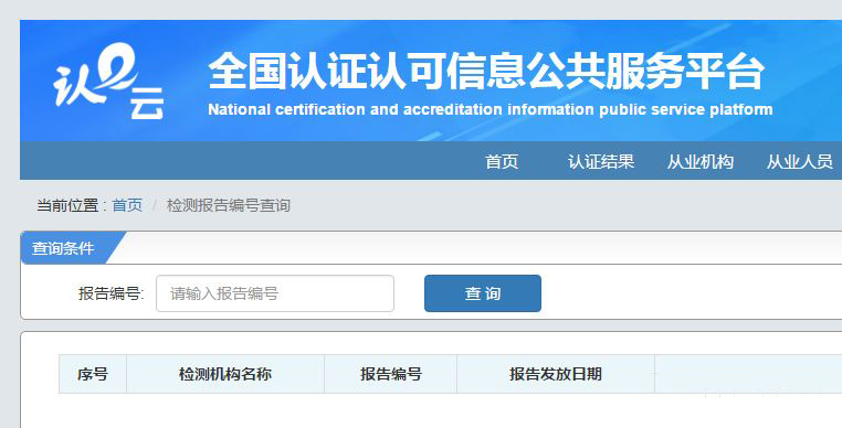 在“检验检测报告编号查询”界面,输入检验检测报告编号,查询出具该报告的时间及对应的检验检测机构信息,进而可判断相关检验检测报告的真伪。目前系统支持查询2016年以来全部有效检验检测报告的编号,以及相关检验检测机构的基本信息。
