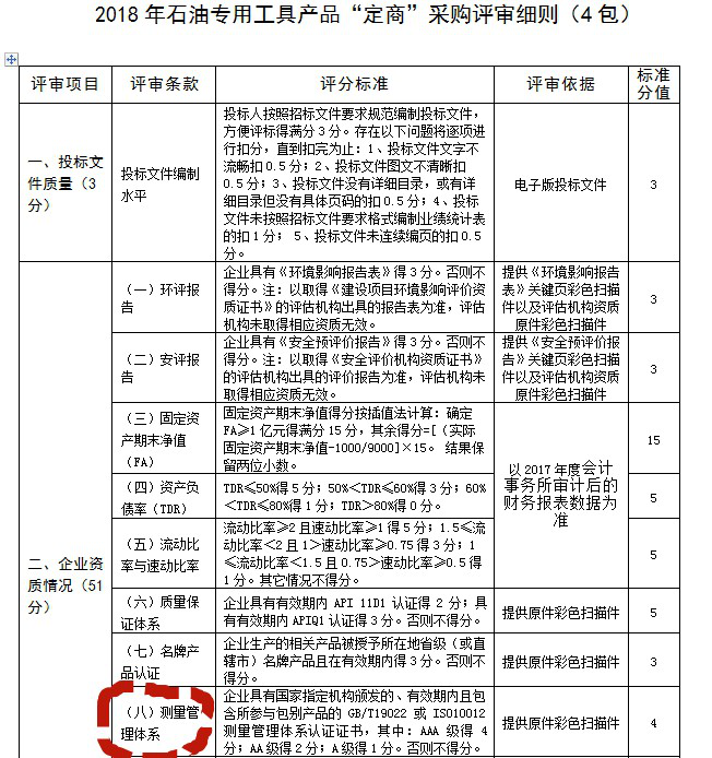 中石油招标对测量管理体系认证的加分项以及客户验厂要求