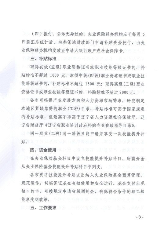 关于辽宁省失业保险支持参保职工提升职业技能有关问题的通知