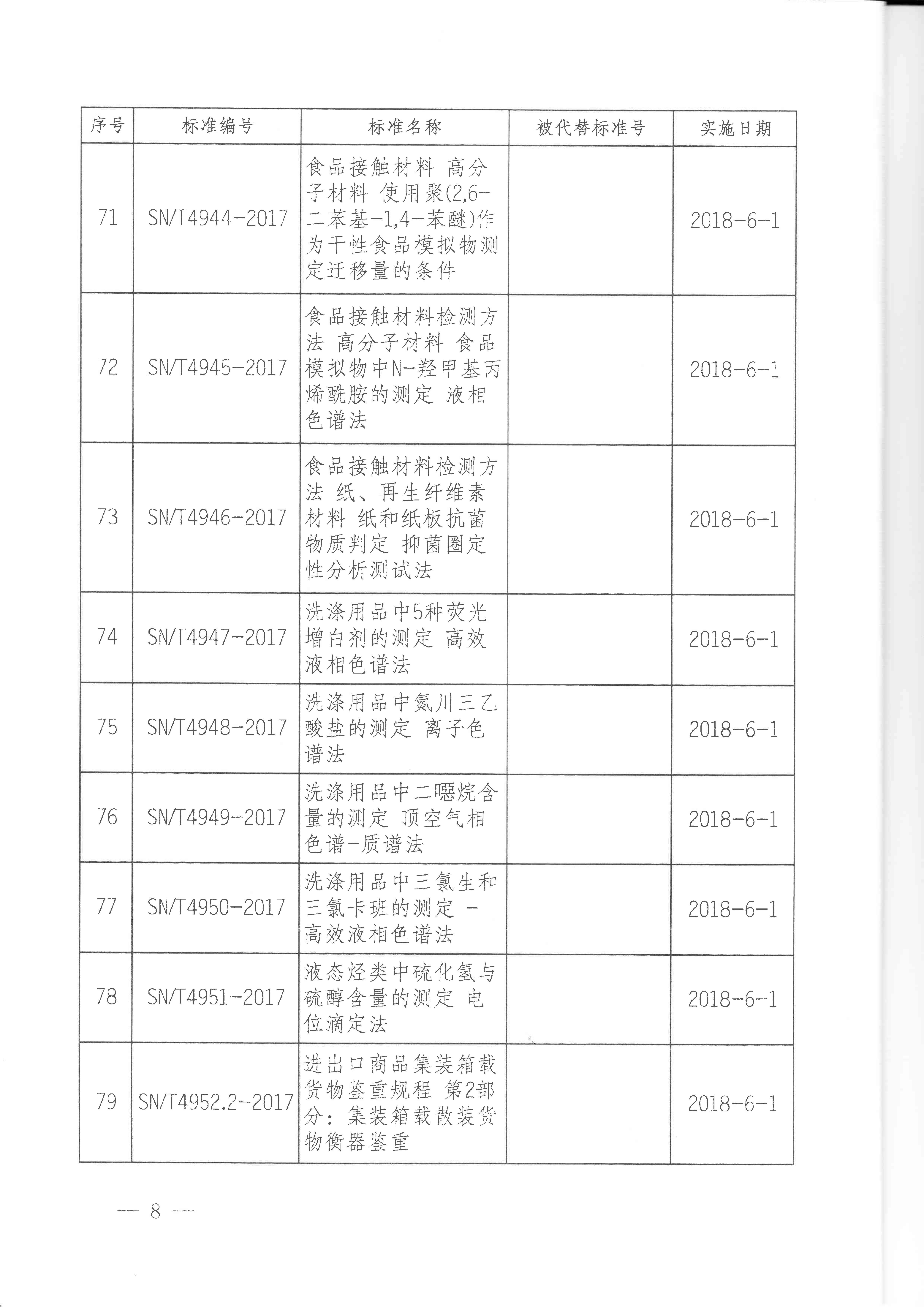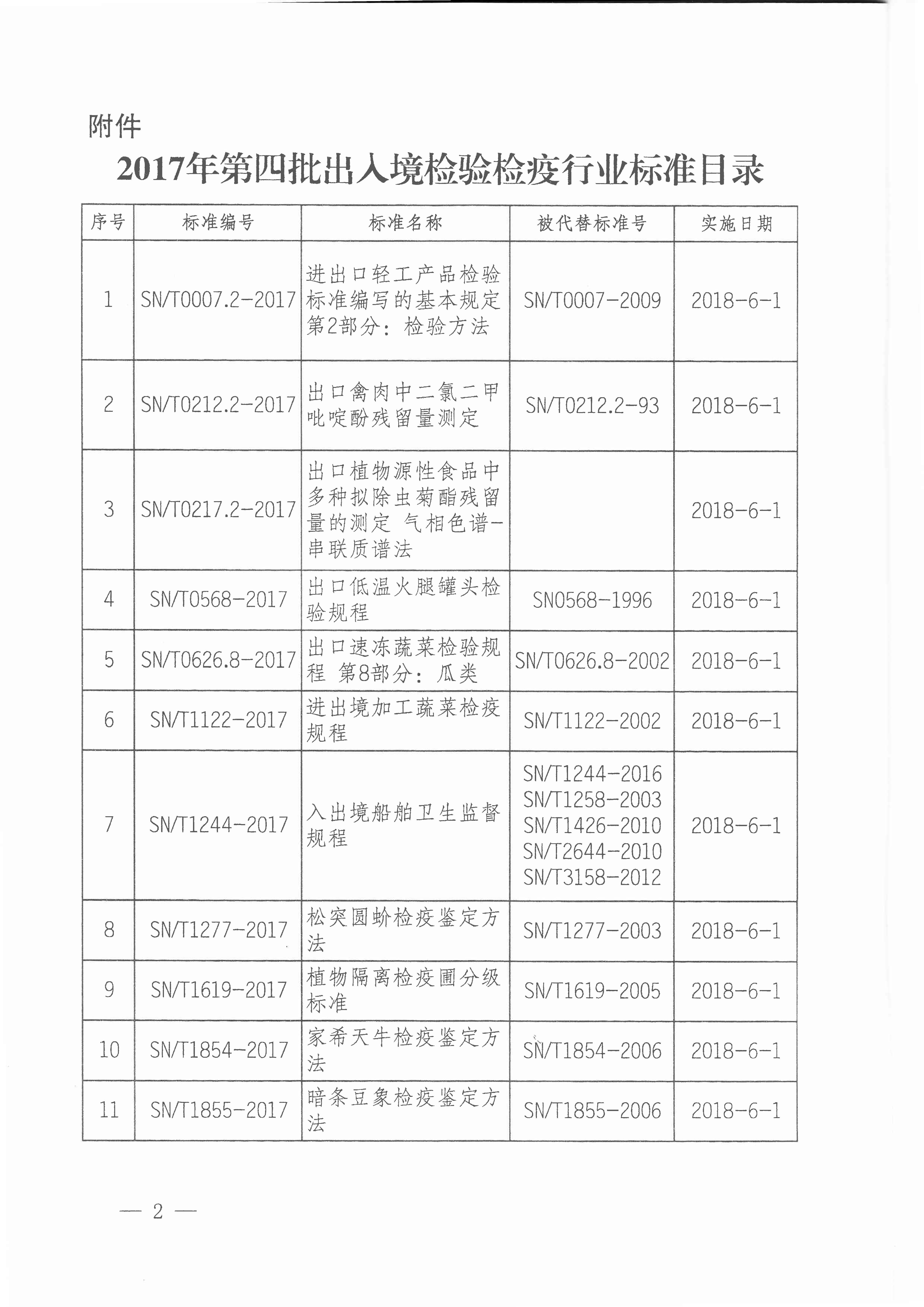 质检总局关于发布2017年第四批176项出入境检验检疫行业标准的通知