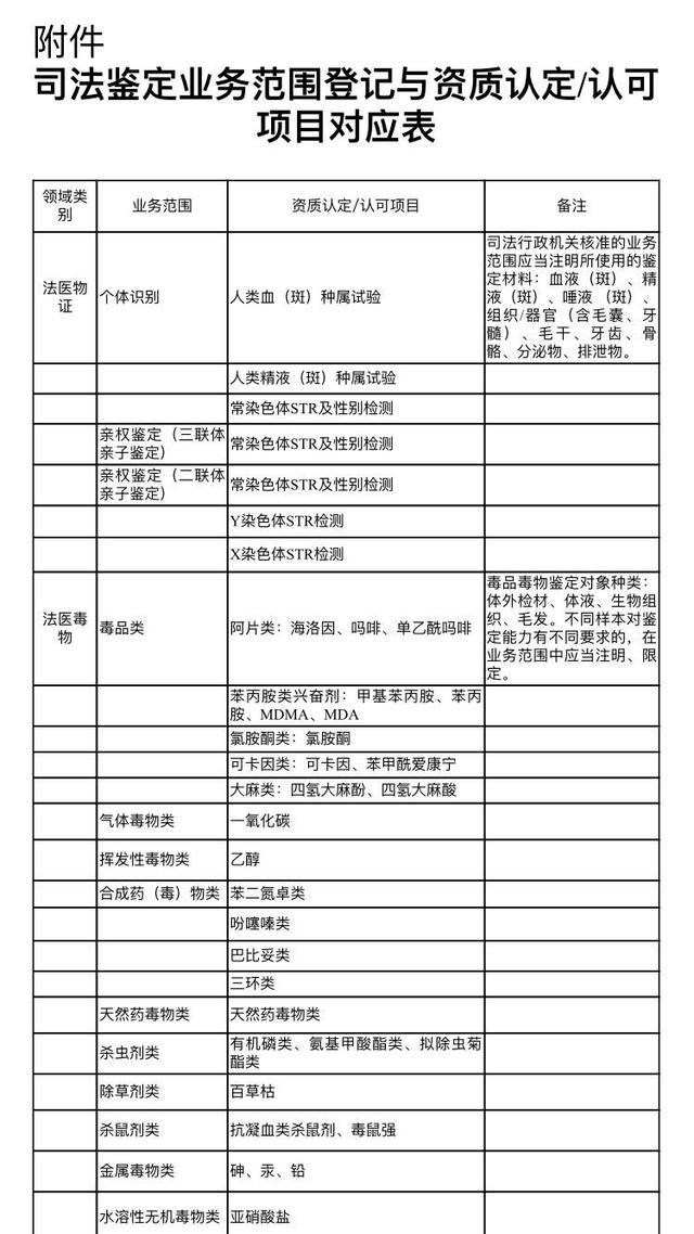 附件:司法鉴定业务范围登记与资质认定/认可项目对应表