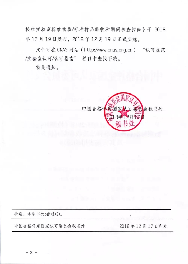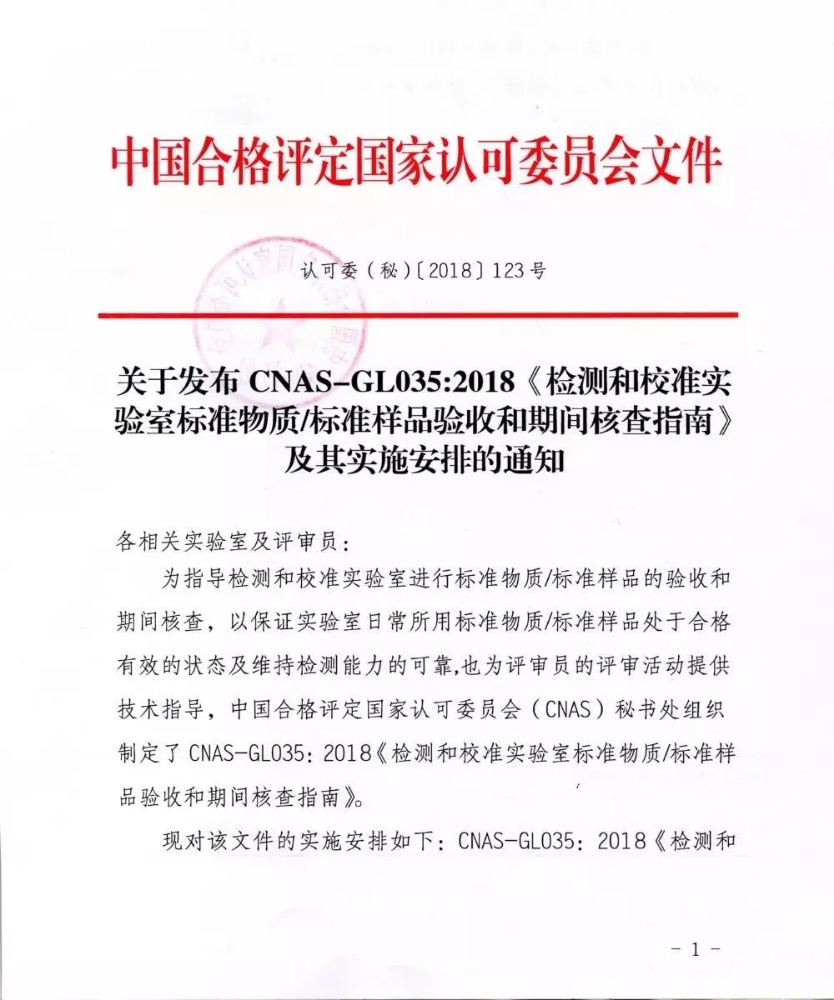 关于发布CNAS-GL035:2018《检测和校准实验室标准物质/标准样品验收和期间核查指南》及其实施安排的通知